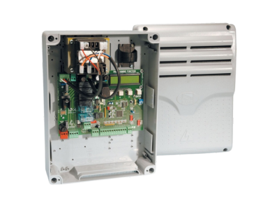24V irreverzibilis motor vezérlés nélkül, nyitási-zárási lassítással és nyitási végálláskapcsolóval (javasolt kapuszárny max. 3 m/400kg).