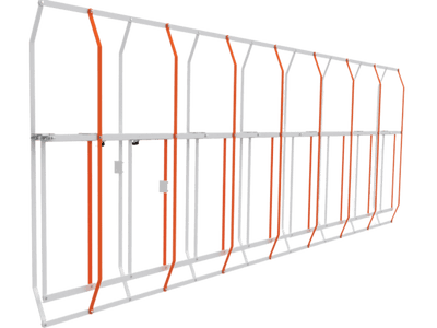 Alumínium sorompószakáll árbóc alatti és árbóc fölötti résszel, 1300 mm magas, 1720 mm hosszú.