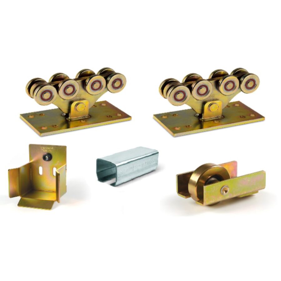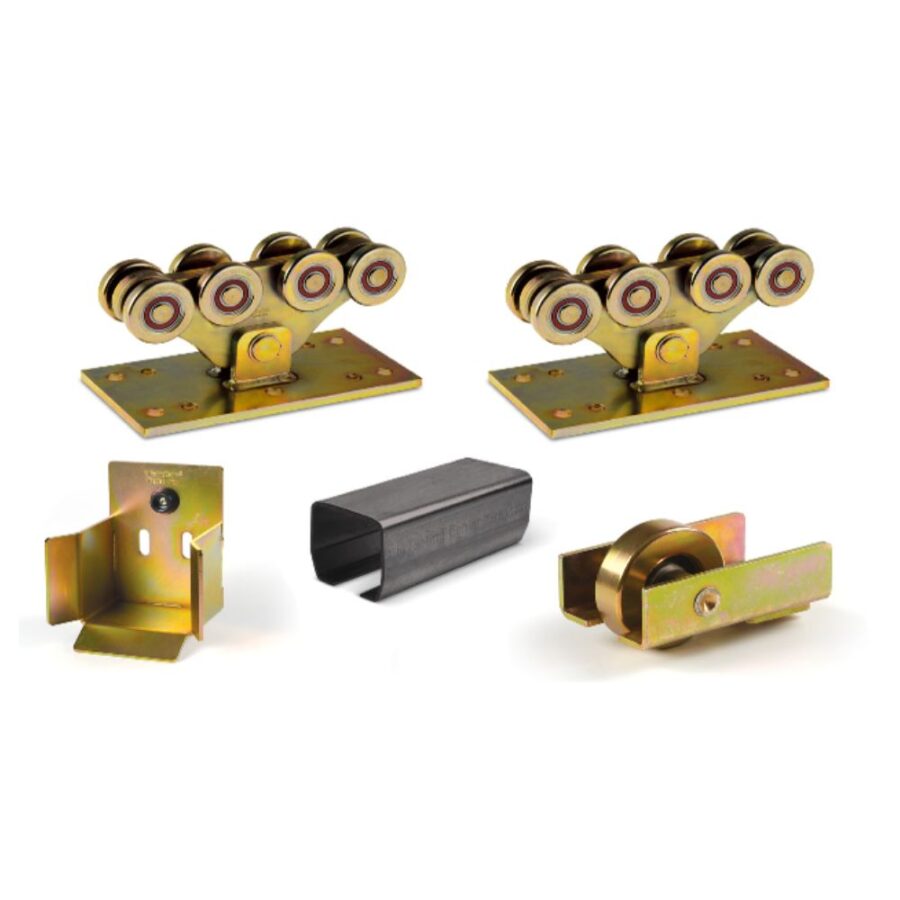 Horganyzott sínnel. Max. 600 kg-os kapuhoz 4 m nyílásig. A szett maximum 8 méter nyílásszélességig bővíthető